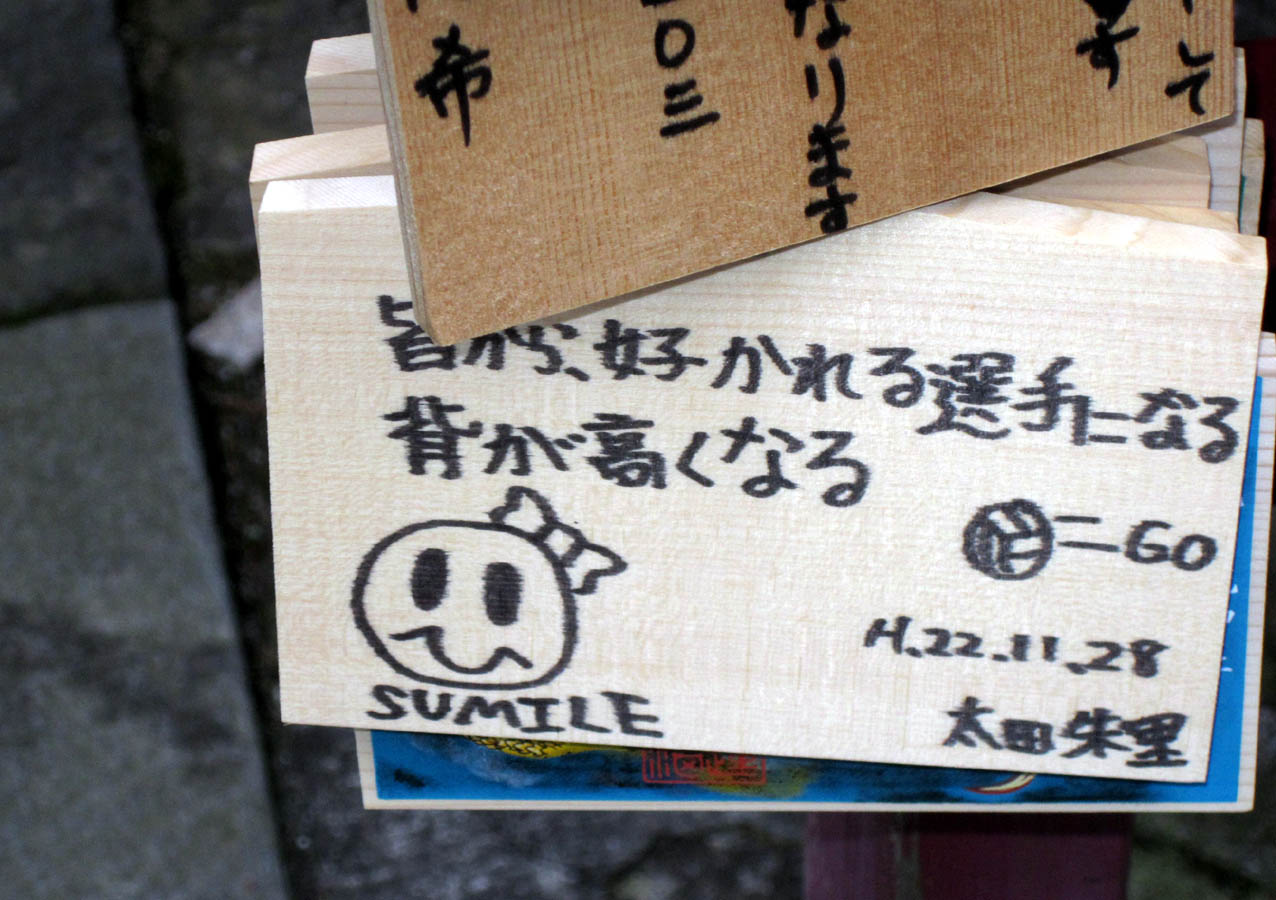 Here's how it works. You pay 100 yen, pour a long stick out of a hole in the top of this box. Then match the Chinese characters on the stick to a drawer, pull out your fortune and hope for the best. If you see 'bad fortune' at the top don't read any further, but tie it to the available pole and walk away. Vicki kept hers.